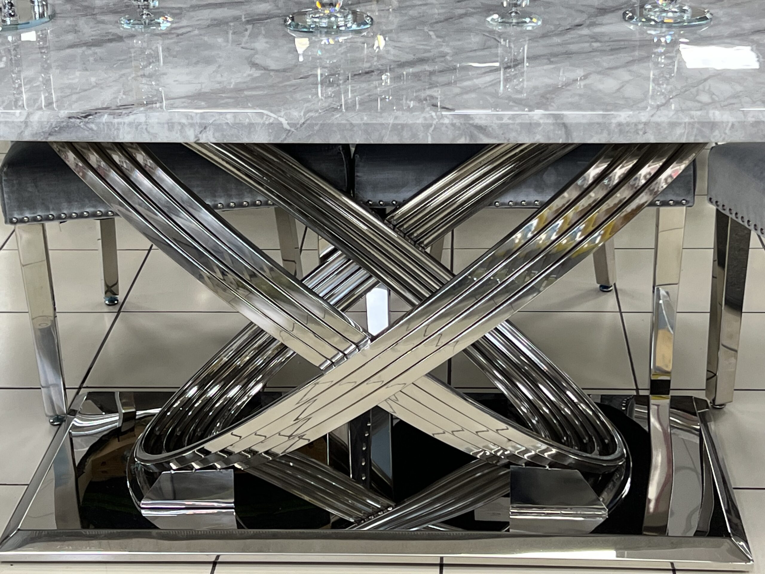 Elina 1.8m Grey Marble Dining Table Size: 180cm x D90cm x H76cm Grey Marble & Chrome Base